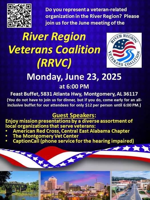 River Region Veterans Coalition Meeting + Add to Google Calendar + iCal / Outlook export Date Jun 23 2025 Expired! Time 6:00 pm Share this event